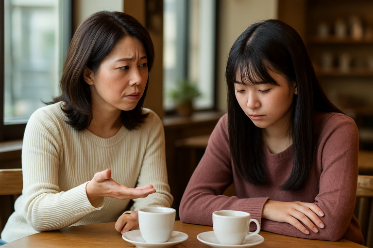 朝のカフェで、隣の席の親子が言い合いをしていた。
